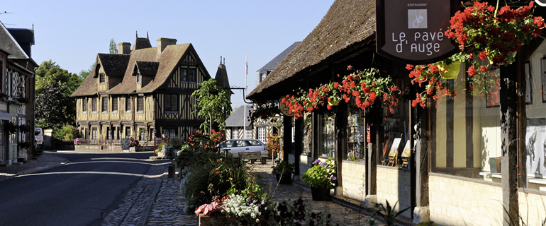 Ancien fief de la famille d’Harcourt situé au coeur du Pays d’Auge, sur la route du Cidre, Beuvron-en-auge fait figure de carte postale avec ses maisons à pans de bois, ses halles et ses manoirs disséminés dans la campagne (source https://www.les-plus-beaux-villages-de-france.org)