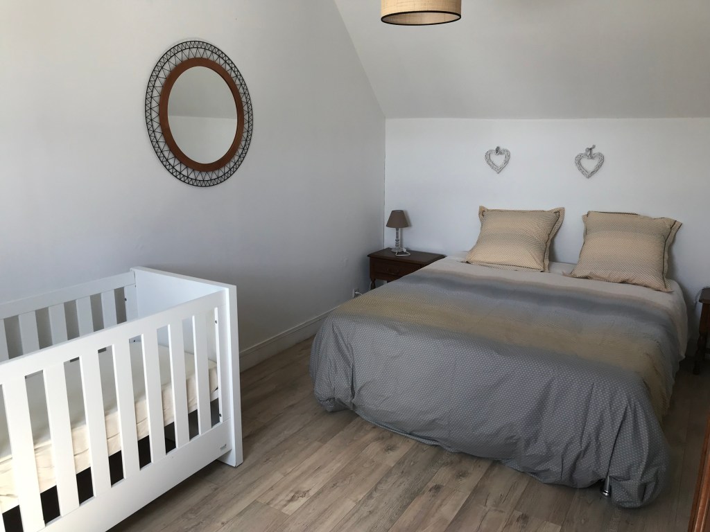 Gîte sur RDC et un étage sur 130m2 disposant de 3 chambres pour une capacité d’accueil de 4 adultes et 2 enfants (2 lits simples)