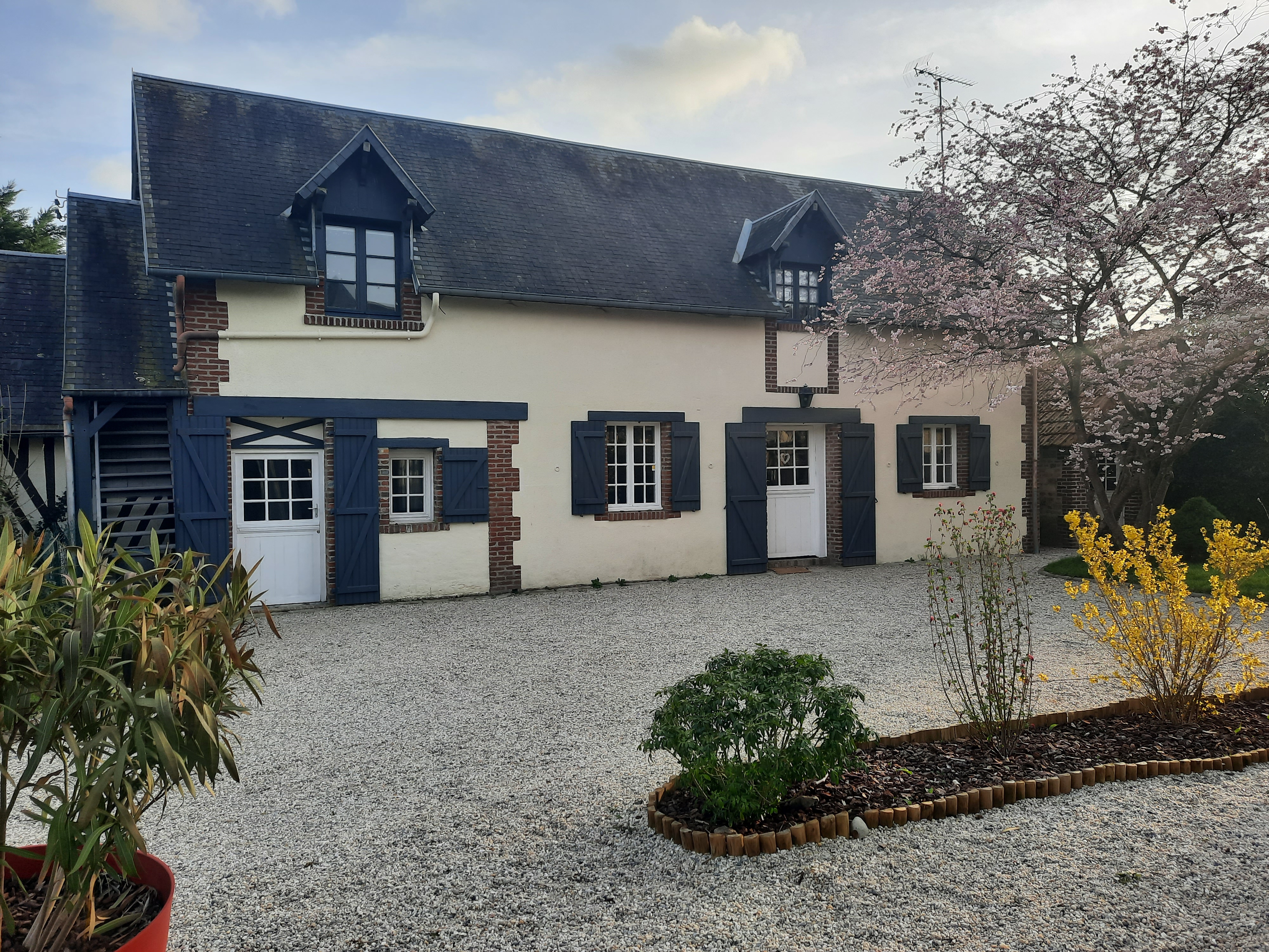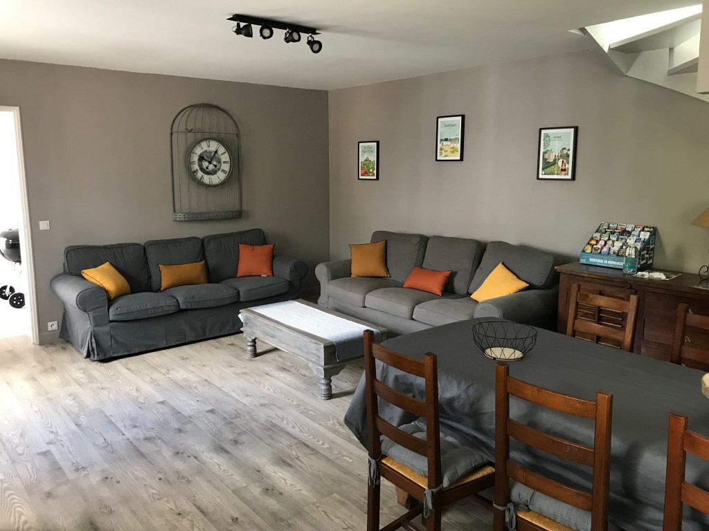 Au sein d’un ensemble Normand de deux maisons avec jardin clos et parking privé, la Grange dispose de 3 chambres permettant d’accueillir 4 adultes et 2 enfants (2 lits simples).