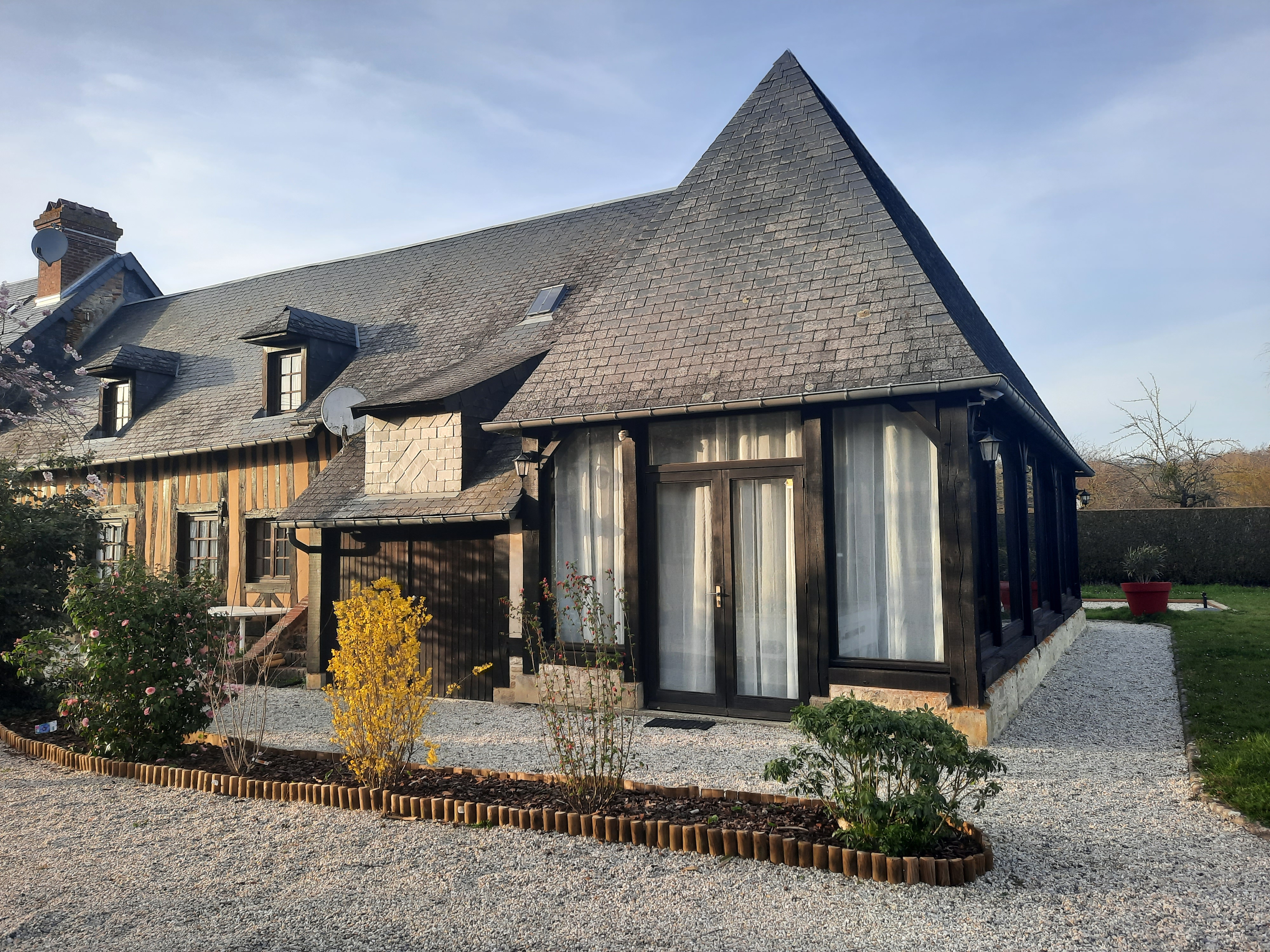 Au sein d’un ensemble Normand de deux maisons avec jardin clos et parking privé, l’ancien pressoir dispose de 3 chambres permettant d’accueillir 4 adultes et 2 à 4 enfants (2 lits doubles).